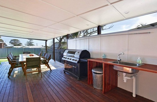 The house has two new bathrooms and there is a hot and cold shower in the garden to wash away the sand. The gourmet indoor kitchen has everything you need to cook up a feast and a large dining table to enjoy it. Outside, the huge sun soaked deck offers a complete kitchen, dining and entertainment experience to enjoy the serenity of Currarong.