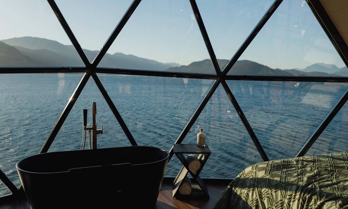 "The Lodge on Harrison Lake" Geodome is located in Harrison Hot Springs. "The Lodge on Harrison Lake" Geodome provides accommodation, featuring Kitchen, Pet Friendly, Wellness Facilities, among other amenities. This Cabin features Kitchen, Pet Friendly, Wellness Facilities, to make your stay a comfortable one.