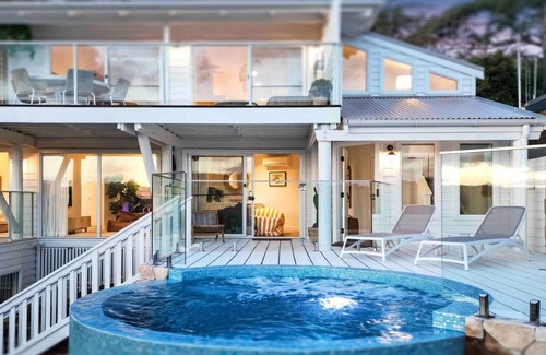 The Lodge family resort - breathtaking beach views, plunge pool and outdoor entertaining. Incredible family holiday resort showcasing breathtaking beach views from the pool and across the home with fabulous outdoor entertaining options.