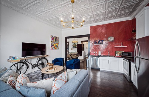 Entering the Brewer Loft, you are immediately struck by the blend of modern eclectic style and historic preservation. Exquisite tile work highlights the large, open kitchen that's appointed with new, modern appliances and all the amenities you need for your stay.