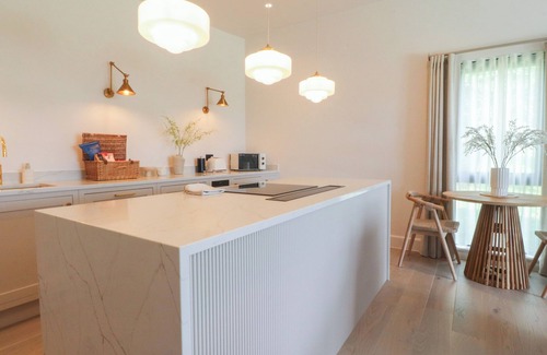 Amenities: Electric underfloor heating. Neff electric oven, induction hob, counter top extractor fan, microwave, fridge & freezer, washer/dryer, dishwasher, boiling water tap, toaster, wine chiller. Smart TV, WiFi. Fuel and power inc. in rent. Bed linen and towels inc. in rent. Off road parking for 2 cars. EV charging to the side of the property (useable via app). Decking with furniture and infinity hot tub. Sorry, no pets and no smoking. Shop and pub 1.6 miles. Note: Unsuitable for children. Note: There are internal and external steps. Please note: Bookings must fall between a Friday and Monday or a Monday and Friday only. Week long bookings are at owner discretion only; please call Sykes to check first