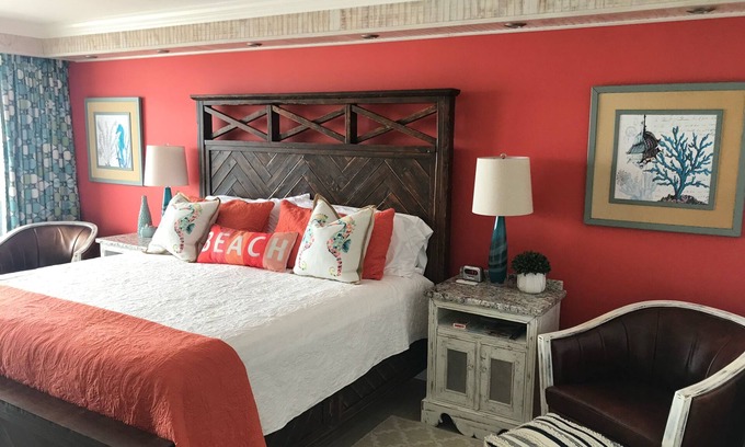 After a great day at the beach relax in the suite with an entertainment center which boasts a 55" Ultra HD TV, bluetooth Soundbar to listen to your own music and set the mood with the fireplace and accent lighting.