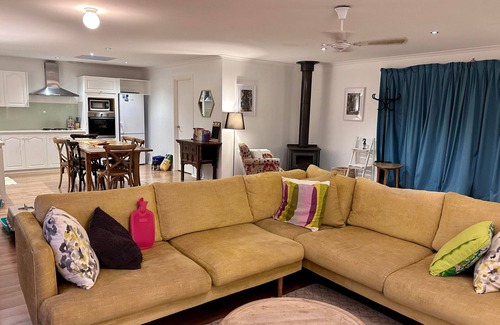 The house features reverse cycle air-conditioning, a wood combustion heater for those chilly nights, fans and double glazed windows to keep the temperature as desired. And if you'd like to do some laundry a washing machine is also available.