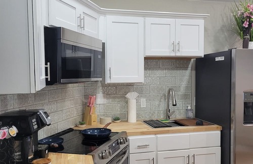 As you settle into this 2-bedroom, 1-bathroom rental, you'll find a living room and air conditioning. Enjoy the free WiFi and Smart TV. Bathroom amenities include a hair dryer, towels, and toilet paper. Prepare a home-cooked meal in the kitchen, complete with an oven, a stovetop, and a refrigerator, as well as a coffee maker, an ice maker, and a microwave. And you can even pack a bit lighter because there's a washer and dryer. Other amenities include bed sheets, an ironing board, heating, and a dining table.