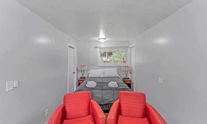 This stylish apartment is in newly renovated and offers beautiful newly refinished vinyl plank flooring, picnic table w/grill in the back yard. "The Main Lineup 3" is a second floor (fully air- conditioned) studio apartment with fully equipped kitchen, living room with a 40"-50" smart TV and one full bath. The apartment has a full sized bed. For families / friends that wish to group together, “The Main Lineup 2” is right next door and sleeps 4 and "1st Base Apt 1 and 1st Base Apt 2" are right across the street and sleep a total of 8.