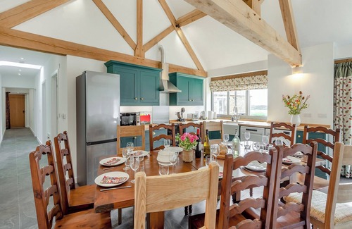 Sleeping six this spacious barn boasts two bedrooms, one en-suite with a waterfall shower over a bathtub, and a family shower room. The main living quarters are open plan and offer a sociable hub to all come together. The kitchen come dining area, is great for chatting, chopping and cooking up a culinary storm during your stay. If requested the owners can set up a table in the Maltings which will accommodate all 14 guests eating together. Those who prefer to lounge than chop can fire up the roaring wood burner and relax upon one of the the sumptuous sofas, the largest of which converts into a deluxe full-size double bed with sprung slatted base. After dining, why not get competitive and grab a board game for some good old fashioned and wholesome fun? Don’t worry if you prefer to kick back and relax with a movie or an online game, the Smart TV and super-fast Wi-Fi will support all your multi-media needs. Outside you have a private area with seating, that overlooks the main courtyard, ample for a spot of star gazing and pre-dinner aperitifs in those balmy summer months.