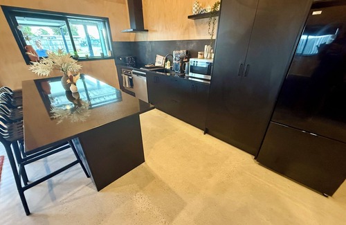 Our open-plan living and kitchen area is designed to bring people together. The fully equipped kitchenette has all the essentials for preparing meals, while the cozy lounge area invites you to kick back and unwind. A heat pump in both the main house and the sleep out ensures you'll stay warm in winter and cool in summer—perfect for year-round stays.