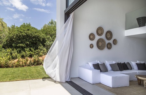 Outdoors, guests can dine alfresco on the spacious patio, unwind in the Jacuzzi or simply savor the sunset on the chic outdoor furnishings. Indoors, guests can lounge in the elegant living room with its floor to ceiling windows or cook in the fully equipped modern kitchen. All four bedrooms feature en suite bathrooms with rain showers, closets and air conditioning. Three of the bedrooms have their own private terrace with uninterrupted sea views.