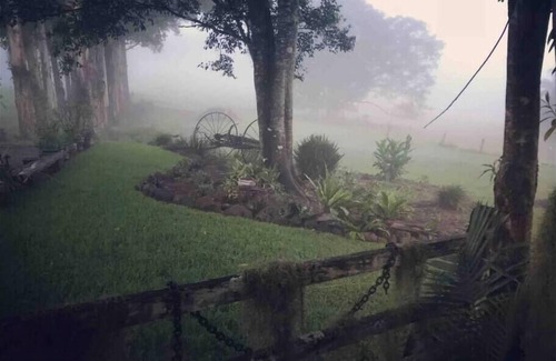 Upstairs, there are two loft-style bedrooms. Main bedroom with a king bed overlooks the living room and has stunning view over the old dairy bales, our bromeliad garden & beyond. Second bedroom, with a queen bedroom is a tad tight on space but great for sleeping in!!