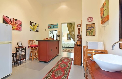 The studio is connected to the main residence with a communal back door which also has a doggy door for the owners dog … The guests privacy is respected at all times.