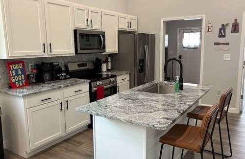 The Modern Slant is a beautifully decorated 3-bedroom, 2-full-bath home that offers the perfect blend of comfort, convenience, and contemporary flair for your stay.