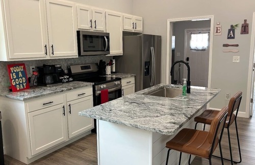 The Modern Slant is a beautifully decorated 3-bedroom, 2-full-bath home that offers the perfect blend of comfort, convenience, and contemporary flair for your stay.