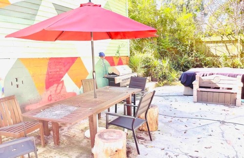 The spot to park is never an issue – there's ample off-street and on-street options. The entire property is embraced by a fence, and you've got a magnificent magnolia tree in the side yard. The large back patio houses the hot tub and grill, ready for you to sink in and unwind. Tucked away on a quiet dead-end street, you've got a sprawling park waiting for you at the end. A coffee shop and a small grocery store are just a hop, skip, and jump away, a mere 100 yards from the house. Carver Market and Community Grounds are easily walkable, and we've got you connected with WiFi and cable TV.