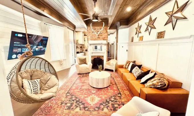 Get ready for an unforgettable group getaway in style! This newly renovated 5 bedroom, 4-bath Victorian beauty boasts a vibrant, eclectic interior that's sure to delight. With an 8-person hot tub, 12' ceilings, and original heart pine floors dating back to 1900, you'll be surrounded by history and charm. Each of the massive 15'x16' bedrooms rocks 12' ceilings, setting the stage for comfort and grandeur. A dining table that seats 12+, a dreamy covered screened front porch, and a spacious kitchen with a Restoration Hardware entertaining island and Carrera Marble countertops are all part of the package. The open floor plan living area is crowned by a 65" Roku TV and exposed brick fire place – making this spot prime for relaxation. Plus, it's perfectly positioned close to Downtown Atlanta, just off the highway.