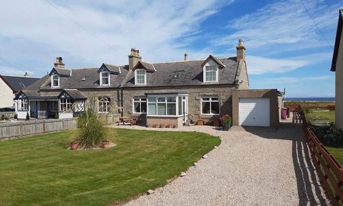 Featuring free bikes, The Mouries Holiday Cottage provides accommodations in Fochabers. This beachfront property offers access to free Wifi and free private parking. Outdoor seating is also available at the vacation home. Providing a patio and sea views, the spacious vacation home includes 3 bedrooms, 2 living rooms, flat-screen TV, an equipped kitchen, and 1 bathroom with a walk-in shower and a bath. Towels and bed linen are featured in the vacation home. There's also a seating area and a fireplace. Guests can relax in the garden at the property. Elgin Cathedral is 13 miles from The Mouries Holiday Cottage, while Huntly Castle is 23 miles away.