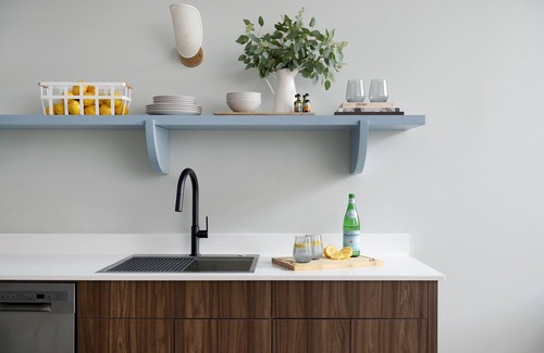 This airy, two bedroom suite exudes a mid-century Italian meets sleek urban loft vibe. Pops of color compliment soaring ceilings while sophisticated villa energy lies in the details (picture: terrazzo inspired floors/countertops and elegant plaster accents).