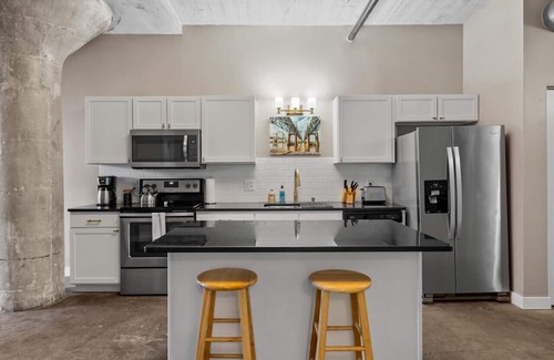 The Nelson Lofts - Unit 4 (2 BR) has 2 Bedrooms , 2 Bathrooms, and max occupancy of 5 people. The minimum rental for this property is 1 nights, but this can change depending on the season you plan on staying. Previous guests have given good rated it, and VRBO labeled it a top-rated Apartment because of the excellent services rendered by the owner or manager of this Apartment, and has consistently provided great experiences for their guests. Most families or guests that use it recommend it to their friends and some of them are repeat guests. Apartment has a friendly neighborhood, and the Downtown has interesting places to visit. If you want to learn more about the Apartment in Downtown, such as places to visit and things to do nearby, you can check below to learn more.
