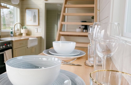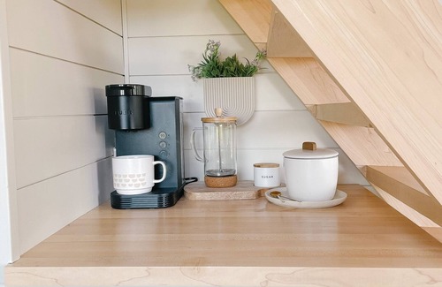 Enjoy a beautiful TINY HOME experience with breathtaking views! The kitchen is stocked with your basic cooking needs . Endy queen mattress in the loft. Relax around your own outdoor fire pit. Endless hiking and biking trails are right at your fingertips. Golf, wedding venue, restaurants, breweries, and shopping are all within a short drive. If you are looking to relax and unwind, this is the place for you!