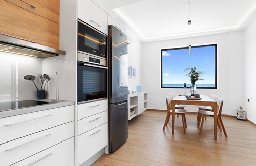 Villa Nest is a brand-new villa combines luxury with natural materials. It consists of two floors. In the interior, there is a fully equipped kitchen with comfortable dining area and a living room. The decoration of the villa combines classicality and modernity. As you enter the villa there are two bedrooms, one with double bed (sleeps 2 guests) and one with two single beds (sleeps other 2 guests). Both bedrooms have en-suite bathroom. All spaces in the villa are air-conditioned. On the upper floor you will find a spacious living room and a fully equipped kitchen. There is lovely veranda with a private pool overlooking the small Sfinari bay. There are also comfortable modern sun beds and a table to enjoy your meals day and night. This space enables you to spend unforgettable moments every hour of the day, with your friends or your family and experience absolute relaxation. The private pool is 23 sqm. while part of it is the children area.