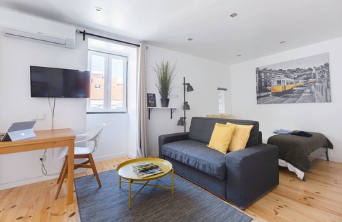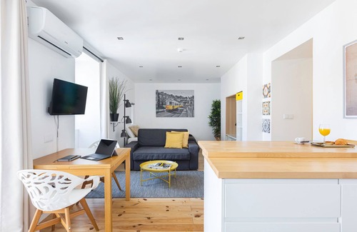 This is a completely refurbished studio apartment located in a historical building with almost 300 years of age. The apartment stands in the same place where fantastic works of art where crafted using old-work skills, adopting the art of melting, sculpting and chiseling to produce all kind of ornamental exquisite works of art that still today decorate a lot of Palaces in Portugal.