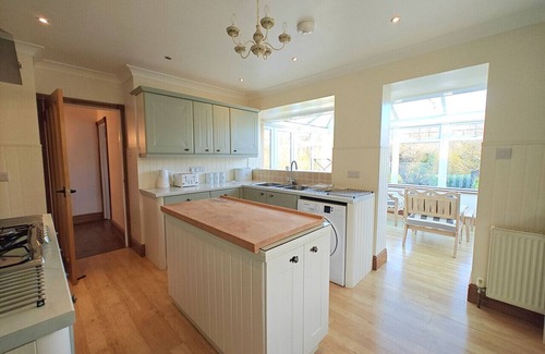 This lovely property offers both a cosy escape with adventure at your fingertips making it perfect bolthole getaway for a small family or group of friends. Take a few steps up to the front door and enter the hallway, where you’ll find a bright, cheerful master bedroom on the right-hand side, with dual-aspect windows allowing for plenty of natural light, and a decorative brick fireplace. On the left-hand side of the hallway, you’ll find a well-appointed twin bedroom decorated in tranquil neutral hues to ensure a good night’s sleep. Further along the hallway, on the right, is the bathroom, kitchen, and finally the conservatory with access to the garden. This area makes up the social hub of the home. The spacious bathroom offers plenty of storage, a shower over the bath and a WC. After a hectic day sightseeing, relax in the spacious lounge where you’ll find a smart TV and comfortable sofas. The large, well-appointed kitchen is the perfect space to rustle up a delicious buffet meal, laid out to serve on the generous kitchen island.