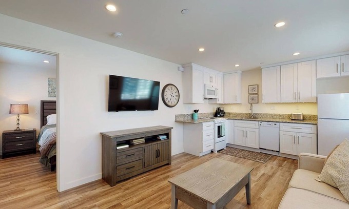 The unit is newly built. It's super cute and clean. Kitchen is fully loaded, linens included. Owner run building so pride of ownership is evident. Granite counters, tile floors in bathroom and luxury vinyl plank throughout the rest of the unit. Stocked kitchen has cooktop and oven and dishwasher. SMART TV Netflix ready, queen bed with sofa in living room. Washer and dryer in unit for longer stays. The unit sleeps 2 adults easily or 2 adults and 2 children with use of the couch and a blow-up mattress.