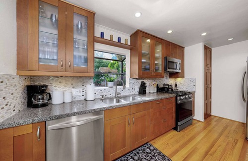 A serene oasis: Nestled in the charming San Diego coastal community of Ocean Beach, this stunning residence is the epitome of tranquility and style. As you step inside, you'll be enveloped in a sense of calm, courtesy of the neutral palette and chic design. From the bright, airy living space to the tropical, lush backyard complete with a fabulous pool, every aspect of this vacation rental hits the mark. So what are you waiting for?! Your escape begins now.