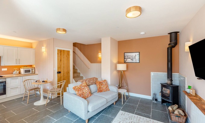 After a busy day exploring the area, return to this converted cart house which has been designed with your comfort in mind, and furnished to a high standard throughout. Walk into the stylish open-plan living area with a comfortable sofa to snuggle up on. Watch a film on the Smart TV, and light the wood burner for cosy nights. If eating in, the kitchen is a lovely space to rustle up a meal using some of the fantastic local produce you will find at the Ludlow Farm shop. The dining table is the perfect setting to enjoy a meal together and plan your holiday activities. There is also a WC on the ground floor. When ready for bed, head upstairs into the spacious bedroom with a double bed and luxurious linen which is guaranteed to give you a good night’s sleep. The high standard continues into the shower room for a leisurely start to the day.