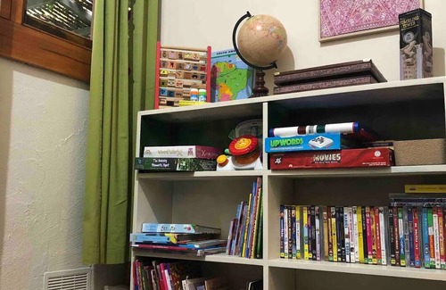 There is a television and DVD player in the living room with a huge selection of DVD’s (including lots of children’s movies).