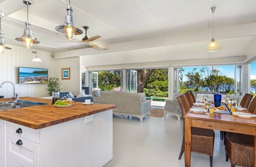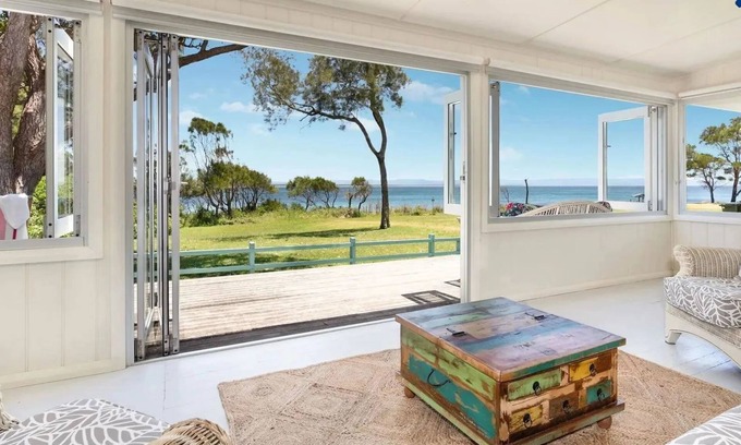 A stylishly renovated 1940's beach cottage situated in arguably the best waterfront position in the area right next to the Currarong Rock Pools. Part of the original cottage was once used as a school room for local children. The original structure has been retained and completely renewed. Additions have been cleverly incorporated allowing the cottage to provide modern conveniences while still retaining its charming beach cottage aesthetic. The outlook from the house is unbeatable, a panoramic ocean vista providing amazing sunset views all year-round. The interior contains everything necessary for the perfect stay and is finished with bright and cheerful coastal themed furniture and décor.