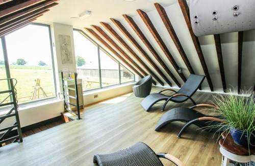Electric cooker, microwave, fridge/freezer, washer, dishwasher, TV, DVD, stereo, WiFi. Fuel, power & starter pack for woodburner, sustainable biomass central heating. Bed linen, towels inc. in rent. Travel cot & highchair. Patio with furniture, BBQ, car charger (extra). Shared use of tennis court, play area, farm walks and animals. Two shared games rooms. One dog welcome. Ample off road parking. Note: Onsite indoor 20-metre bespoke infinity heated pool, fully equipped gym/relaxation area and integrated hot tub shown in the images is available for private bookings during your stay and is subject to an additional charge.For example: a group of 5 people will cost £65 for an exclusive 90 minute session (no under 4's for safety and insurance rules). These facilities can be booked directly with the owner prior to or during your stay at www.plaishparkleisure.co.uk. There are ample 90-minute sessions available 7 days a week. Please bring your own towels for use of swimming pool. This property may not be suitable for people with limited mobility due to different levels and steps. Hen parties welcome, stags on negotiation.