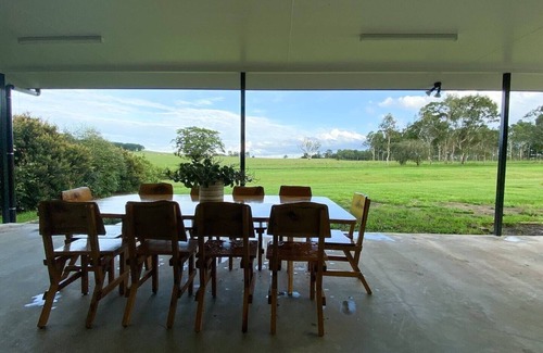 The large patio fit with an outdoor timber dining table and BBQ provides a stunning view of the old rail way and the neighbouring paddock. Kick back and relax with a cold drink and some snags on the barbie while watching the cows come down for their afternoon graze.