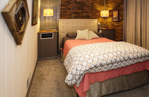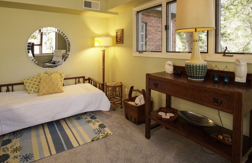 Come listen to our nightly owl serenade! Mid-century modern home with private in-law suite in a quiet neighborhood on residential street. Suite is the entire bottom floor of a 1950’s split-level California style contemporary home. Lots of exposed brick and charm. One bedroom, one bath suite with large living area and private entrance off the back of the house, complete with private outdoor terrace, sitting area, pool in summer, and fire pit in winter. We live on the top two floors but there is a sliding barn door that is locked between your space and ours.