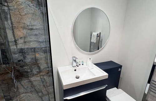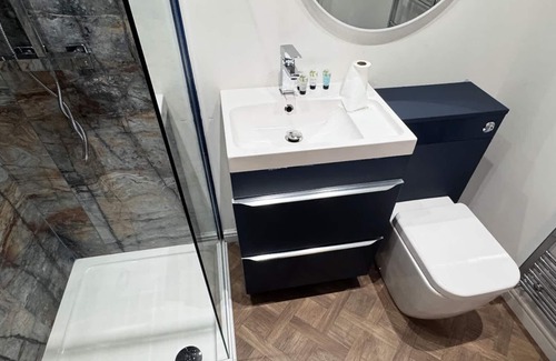 A king size bed in the bedroom, a tastefully decorated living area , which has a kitchen and a stunning shower room, that has all the amenities you need for your self catering holiday.