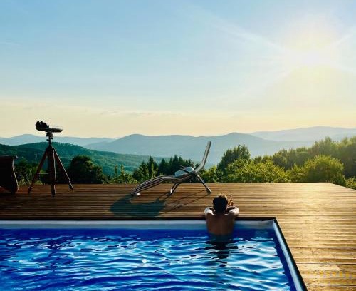 Food & DrinkBottle of water, Tea/Coffee makerBathroomToilet paper, Shower, Toilet, Private bathroom, Bidet, HairdryerGeneralFan, Heating, Carbon monoxide detector, Trash cans, Private entrance, Tile/Marble floor, Fire extinguisher, Iron, Smoke AlarmOutdoorsOutdoor furniture, Terrace, Private pool, Outdoor dining area, BalconyKitchenOven, Kitchen, Cleaning products, Dining table, Kitchenware, Refrigerator, Stovetop, Microwave, Toaster, High chair, Electric kettle, Wine glasses, Washing machineLiving AreaDining area, Sofa, Sitting areaViewPool view, View, Garden view, Inner courtyard view, Mountain viewBedroomLinens, Childrens' cribsAccessibilityUpper floors accessible by stairs onlyBuilding CharacteristicsSemi-detachedRoom AmenitiesSofa bed, Non-feather pillow, Clothes rack, Drying rack for clothing, Socket near the bed, Feather pillowEntertainment & Family ServicesBoard games/puzzlesPool and SpaInfinity Pool, Pool with a view |