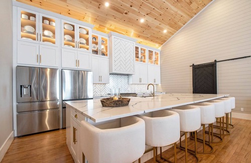 Set up like a boutique hotel, this sprawling home offers a seamless blend of rustic charm and modern comforts, making it the ideal sanctuary for relaxation and rejuvenation. Step inside the 8-foot iron doors and be greeted by the completely renovated church parish building and enjoy the warm embrace of 100-year-old hardwood floors, 12-foot ceilings, sconce lighting, and large bedrooms with ensuite bathrooms. The chef's kitchen comes fully equipped and beckons culinary enthusiasts to create gourmet meals. It features a 16-foot island, double refrigerators, 3 dishwashers (one in the basement kitchen), a large pantry, and an oversized gas dual fuel range. The kitchen is open to the dining and living area and has 22- foot ceilings, a ventless gas log fireplace, and a bar area. This marvelous property offers plenty of space for guests to relax and unwind. Enjoy the convenience of amenities like HVAC, WiFi, a fitness area, and a large, finished basement with a full kitchen, 2 double XL bunkbeds and two full bathrooms downstairs. All bathrooms are equipped with hairdryers, towels, shampoo, conditioner, face soap, and body soap.