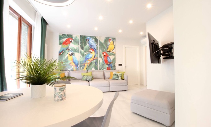 Parrots & Palms is a new apartment a few steps from the sea and from the center. Very bright thanks to the southern exposure. The greenery and tranquility of the area in which it is located makes it the perfect home for a relaxing holiday. The house is equipped with every comfort including air conditioning in all rooms, smart TV, wifi, parking, a comfortable bathroom, a spacious terrace and a well-equipped kitchen.