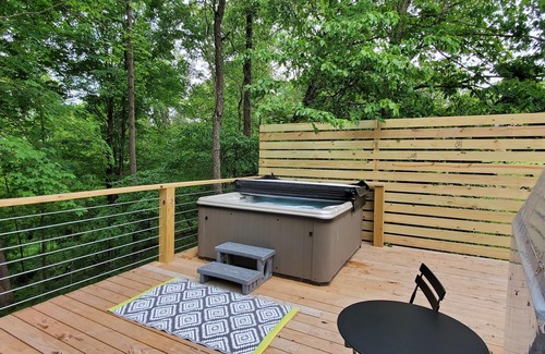 Nestled in the heart of Hocking Hills, you will find this breathtaking 19.8 Ft geodesic dome waiting to offer you a getaway of both relaxation and recreation. You will instantly feel restored with our bright, open floor concept. You will find all you need within this dome, which includes a queen bed, kitchenette, and large bathroom with glass enclosed shower. Enjoy meals in the kitchenette with two cooktops, a microwave, pod coffee maker and even a small refrigerator with a freezer. We have cookware and dishes ready for you! No matter the weather, you will find comfort in our climate controlled environment, as well as a gorgeous electric fireplace to enjoy. Step outside to enjoy a night by the fire pit, love seat outdoor couch and a bistro dining set. Relax in the hot tub as you enjoy the magnificent views of Hocking Hills. .