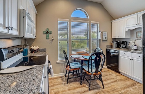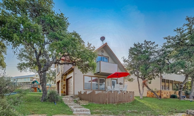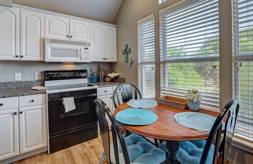 As part of the Cool Water Cottages, The Perch offers fun-filled lakeside living for you and your loved ones! Whether you're hanging out inside or outside, rest assured that the memories made here will be priceless. Inside, get cozy on the soft seating in the water view living room while the chef of your group utilizes the well-equipped kitchen's updated appliances and granite countertops. When the delicious dishes are ready to be enjoyed, dine at the quaint in-kitchen table, or alfresco under the glorious Texas sun. The loft's large TV ensures that you can keep up-to-speed on your favorite TV shows and movies, and central air-conditioning ensures everyone is always cool and comfortable no matter the temperature outside.