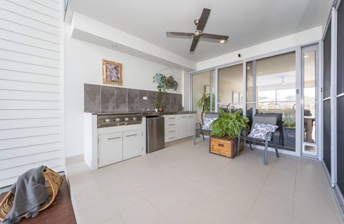 The house is set up with a family holiday in mind. There are indoor and outdoor kitchens, three sitting areas and upper and lower decks. If you need to bring work with you, a separate study and WiFi make this easy. The house has reverse cycle air conditioners and ceiling fans. You also have access to a washing machine and a double lock up garage.