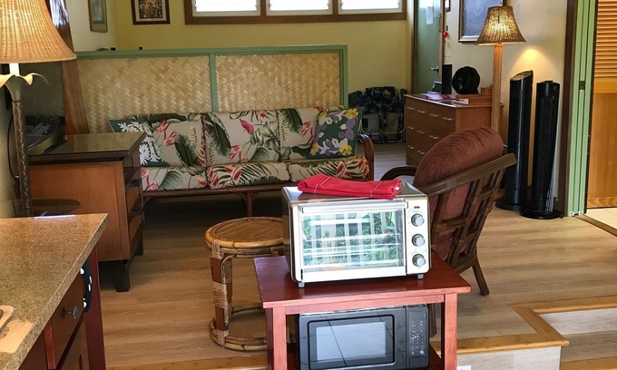Hale Maluhia is a large, fully equipped condominium/studio unit fronting on a tree lined walking path leading down to Anini Beach. It has a large, look well equipped kitchenette, Queen size bed, Wi-Fi, Smart TV, a full bath, beach towels, beach chairs, beach umbrella, snorkel gear and a portable cooler (no AC or laundry facilities). The lanai is perfect for stargazing or just enjoying some quiet outdoor reading. There's reserved parking, a great pool area with a communal barbecue, and shopping and restaurants are just minutes away. Guests are limited to 2 adults (over 25 years old) and STAYS ARE LIMITED to a MAXIMUM of 7 NIGHTS. Princeville at Hanalei's location is conveniently close to Kilauea, Hanalei and the rest of Kauai's North Shore's numerous beaches and features. Given its size, location and amenities, Hale Maluhia is by far Princeville's best bargain. FOR BOOKINGS BETWEEN 12/19/2025-1/1/2026, THERE WILL BE NO CANCELLATION/DATE CHANGE REFUNDS. E komo mai! 🤙🏽