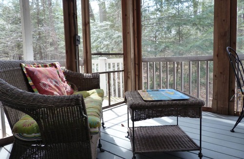 A warm and inviting three bedroom, three bath cottage located on a wooded lot near Lake Michigan. This cottage features a peaceful, quiet setting for retreat, yet has enough space for family reunions and gatherings with friends. The cottage features a fully equipped kitchen on the first floor and laundry facilities. Relax in our outdoor hot tub, read a book on our screened in porch or enjoy family and friends around an outdoor wood fire. In the winter, enjoy time in front of the wood stove after a day of cross country skiing. This home offers a peaceful getaway with all the comforts and amenities of home. This is a great house for entertaining friends and family or enjoying a romantic getaway for two in a beautiful wooded area with easy access to wonderful nearby restaurants and shopping. Access to area Lake Michigan beaches is a short drive away. Stroll through the neighborhood to view beautiful Lake Michigan and enjoy a gorgeous sunset.