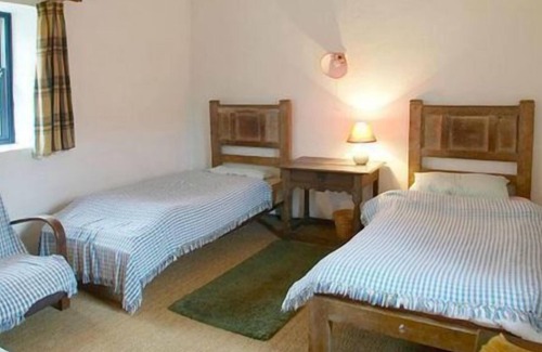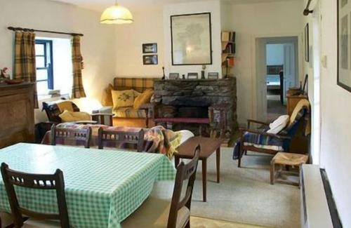 Inside: Entrance porch with washing machine, storage etc enters into living area with open fire with a back boiler comfortable chairs. Dining/Kitchen with Fridge, Electric cooker and Microwave. Three bedrooms with one twin room, one double room and one room with three single beds.Two Bathrooms one with bath, toilet, sink and one with shower, toilet and sink.This property is ideal for artists and writers wishing to escape.