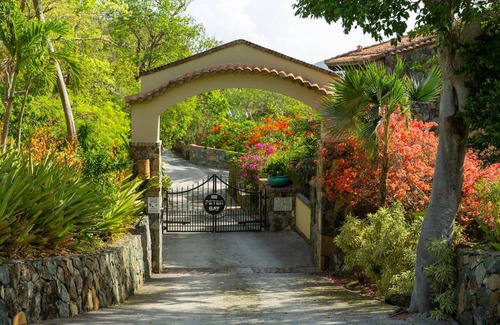 The Peter Bay Honeymoon Suite is a romantic 1BR/1BA villa overlooking the breathtaking Caribbean panoramas of St. John's north shore. Located at the exclusive gated community of Peter Bay Estate, the Peter Bay Honeymoon Suite occupies the lower level of the Peter Bay Gatehouse Villa which consists of two 1BRs. The lower level suite is the Honeymoon Suite, and the upper level suite is the Penthouse Suite. Each suite is private, and self-contained with separate entrances. The Penthouse Suite, and the Honeymoon Suite can each accommodate an additional two guests in the living room queen sleeper sofa. Both the Honeymoon Suite and the Penthouse Suite can be rented together as a 2BR / 2BA.