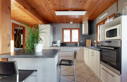 The kitchen has dishwasher, oven, microwave, induction hob, raclette, grill, pancake, fondue, mixer ...