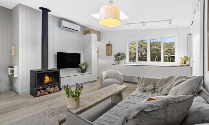 Inside you'll find luxurious linens, super comfy king size bed and gas fireplace to keep you cosy over winter. Full kitchen facilities for you to cook if you choose, including full size fridge and dishwasher. Beautiful bathroom with double vanity and large rainwater shower head.