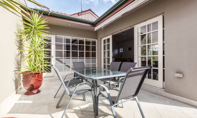 Immerse yourself in modern sophistication from this central townhouse, seamlessly blending contemporary living with relaxation. Greeted by a lush and manicured garden, entering the house reveals a spacious interior awash with natural light. With air-conditioning and heating throughout, every season is catered to in ultimate comfort. For those needing to work remotely, there are two work desks providing an ideal environment for productivity.