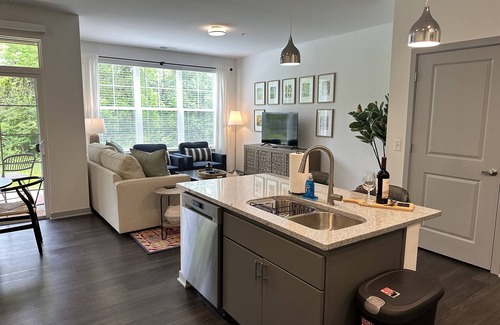 This apartment is situated within a beautiful community called The Kensington At Riggins Run that was just built in early 2023. We have a corporate housing contract with them, which allows us to fully furnished this apartment and a few others and rent them to guests like you. The community is modern, clean, and upscale. It's located in a quiet part of the Dublin/Hilliard area; one of the most desirable suburbs of Columbus. You'll love being just a few minutes from all the shopping and dining options of Bridge Park and all the other attractions of this area. Commuting from here to any other part of Columbus is easy thanks to our proximity to freeways. Before booking, you should know that a train runs near the property a few times a day. You'll hear it occasionally, so we like to mention it, but this community has been a huge hit among our guests and we now have multiple rentals there since it's been so popular.