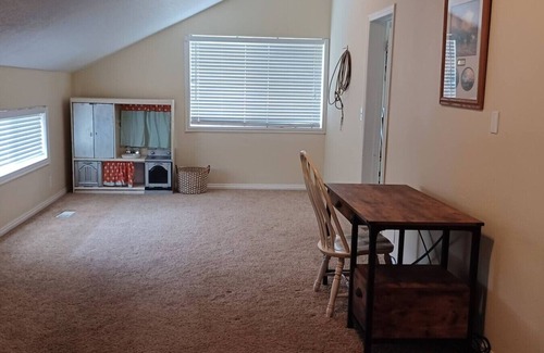 The Ranch House is large and spacious with 3 master bedrooms (first bedroom is located on the main floor, second and third bedrooms are located on the second floor), kitchen and common areas, for a relaxing stay after a long day at the parks or just to enjoy the quiet beauty of Alton. There are a lot of places for kids to play throughout the house. There is a 50-inch TV and Blu-ray in the basement to watch movies or your favorite streaming service. A large lawn for the kids to play on. A washer and dryer conviently located on the main floor.
