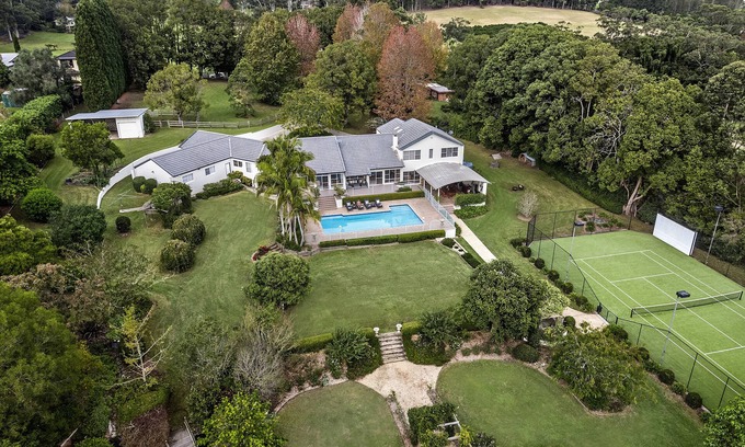For the activity-inclined, this well-appointed property offers an array of playful opportunities — from an on-site tennis court, to a large swimming pool, flowing onto an entertaining area and fully-equipped games room with wet bar.